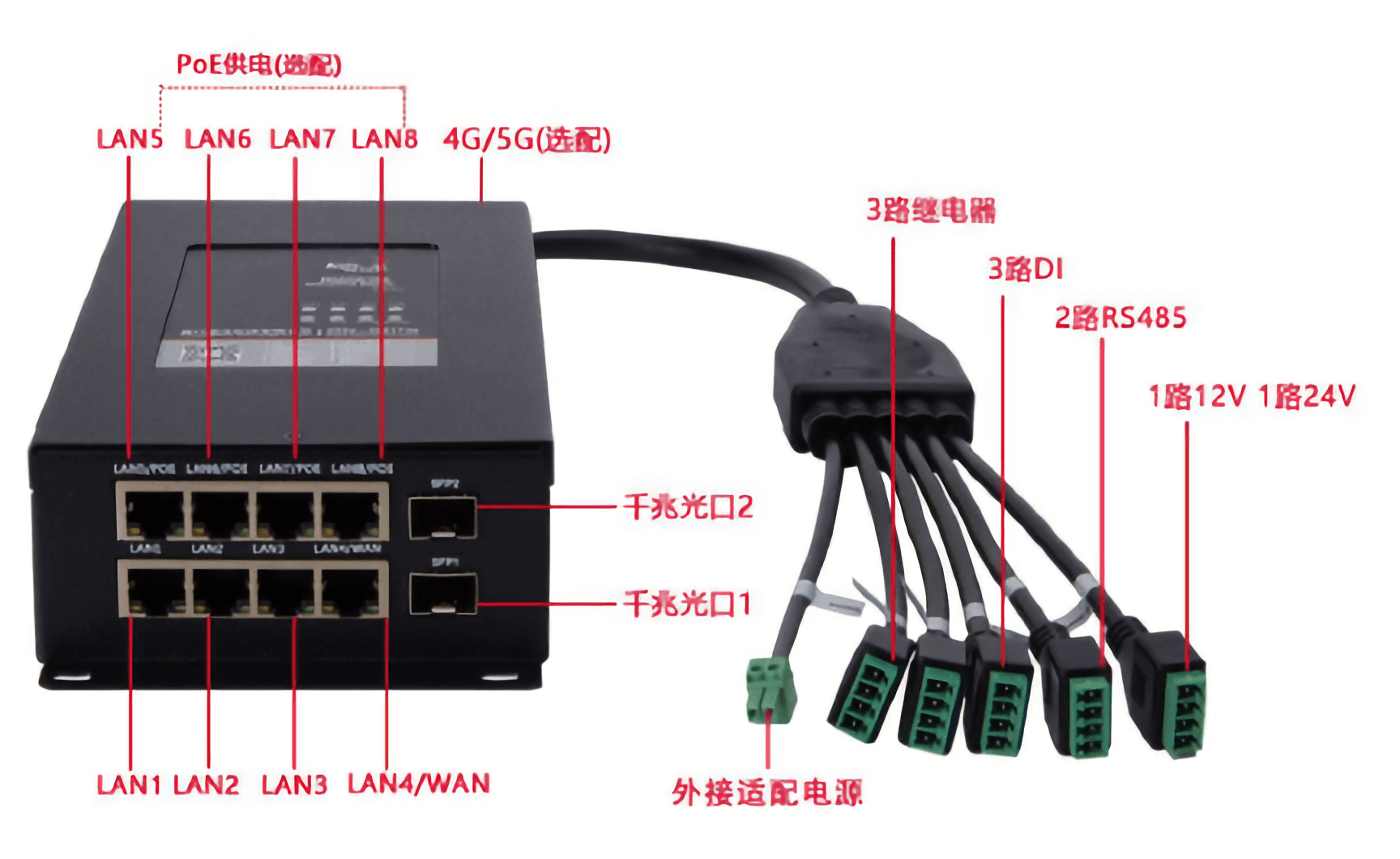 支持光纤、有线、4G,可选配5G、WiFi、Lora、GPS等 |