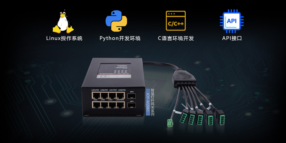 JOY-M2061智慧灯杆专用网关,具有强大的设备接入能力、边缘计算处理能力、联动控制能力、安全防护能力等。Linux系统,集成Python开发环境和 C语言开发环境,提供标准API接口,方便二次开发应用。