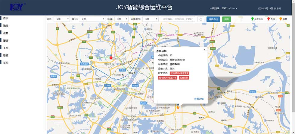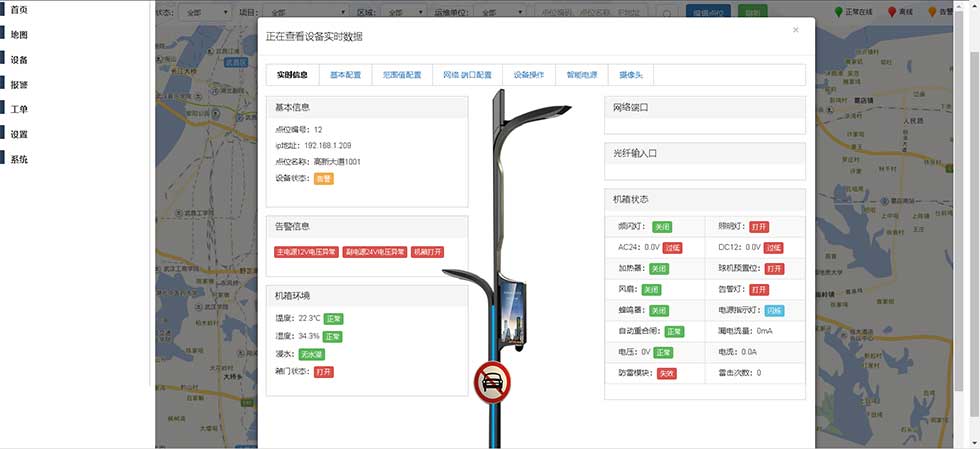 l 精准设备地图:管理系统对该管区的每个箱子的名称、所属组织、设备类型、IP地址、都有明确的表示。能精准确定该设备所属地理位置。