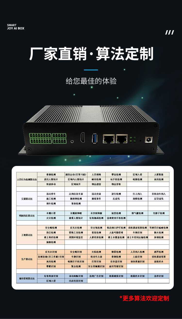 | 智能警戒(最大32路) | 越界/区域入侵、聚集、徘徊、跌倒 | |