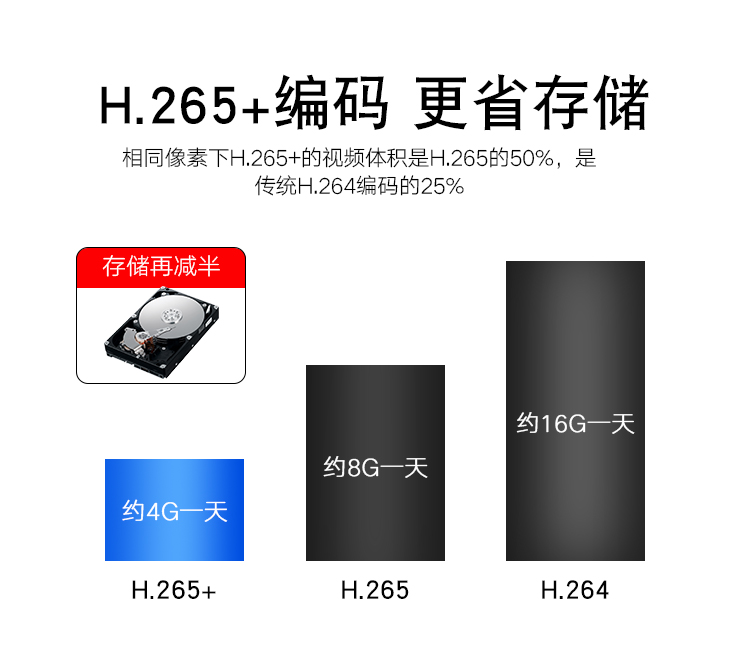| 压缩标准 | 压缩标准 | H.265/H.265+视频编码压缩 |